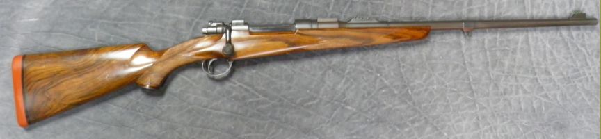 JOHN RIGBY & CO in .375 H & H, This is a magnum square bridge rifle converted from the .350 magnum. The barrel is stamped with the older 63 Sackville St London address. The rifle has a 24" barrel, weight is 8 1/2 lbs. The stock has been replaced with high grade walnut. A great vintage Rigby hunting rifle. Like new. | $12,500.00 |
