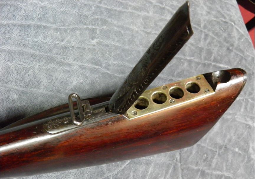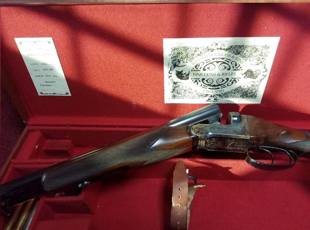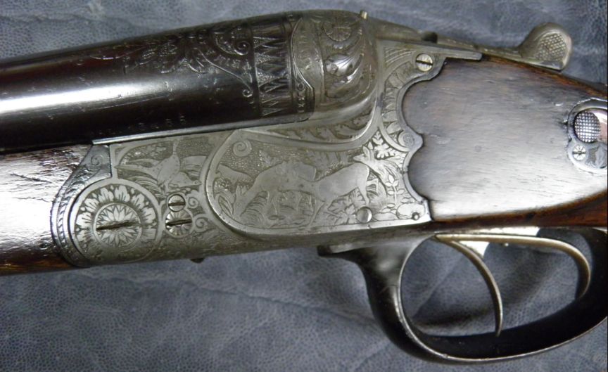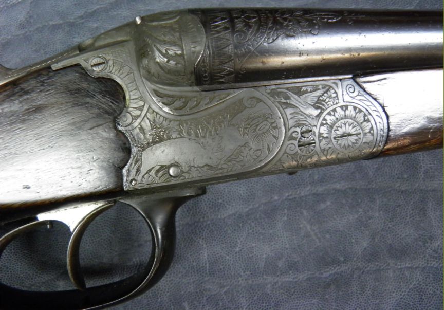 H. Keller drilling in 8mm/ 16 ga. Has 23" barrels, weighs 7 lbs and has 14" LOP. Has engraved game scenes, bullet trap, Greener side safety and Purdy side clips. | $2900.00 |