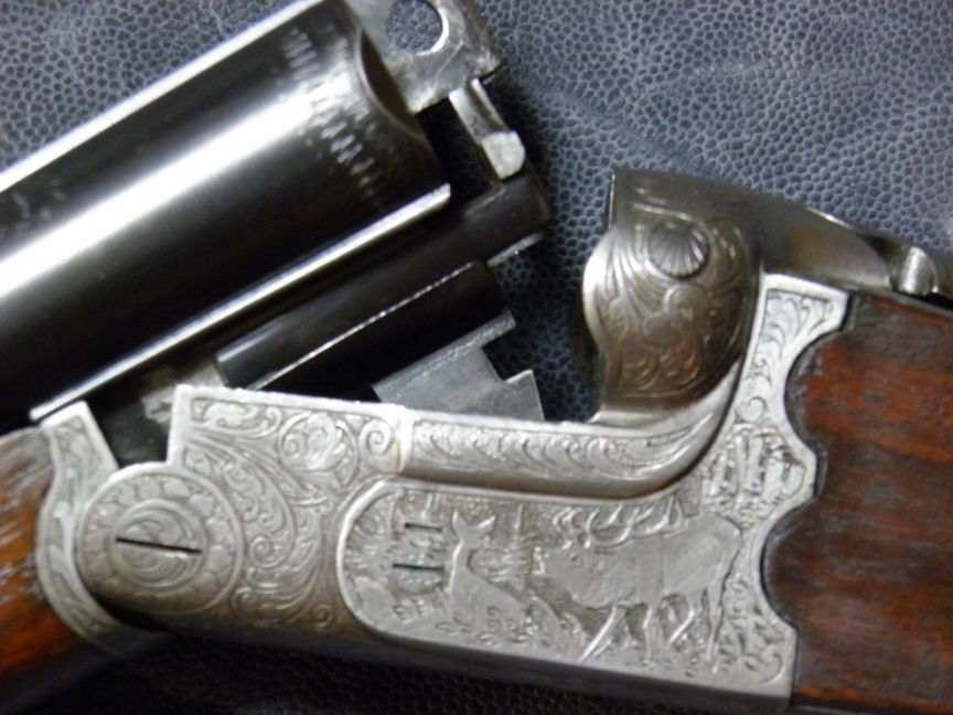 Anton Zoli combo rifle in 6.5mm X 12 ga. has 25" barrels, weighs 8 lbs, has 14" LOP. Made in Italy, a great combo rifle/shotgun. Has rifle/shotgun sights with mounts for scope. Engraved game scenes. | $2,500.00 |